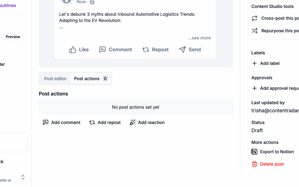 The key to growing your LinkedIn presence is to focus on timely engagement. With ContentRadar, you can automate and schedule post actions, ensuring you capitalize on the crucial first 60 minutes to boost engagement.
