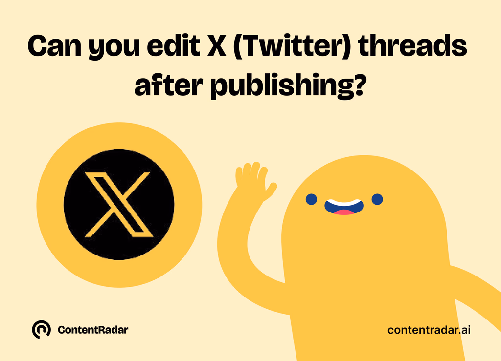 So, can you edit threads on X after publishing? Unfortunately, no—but you’re not without options. Adding follow-up tweets or even deleting and reposting can be quick fixes for minor errors, though they may come at a cost in terms of engagement or visibility. However, by using a social media tool like ContentRadar, you can take a proactive approach to avoid errors altogether.