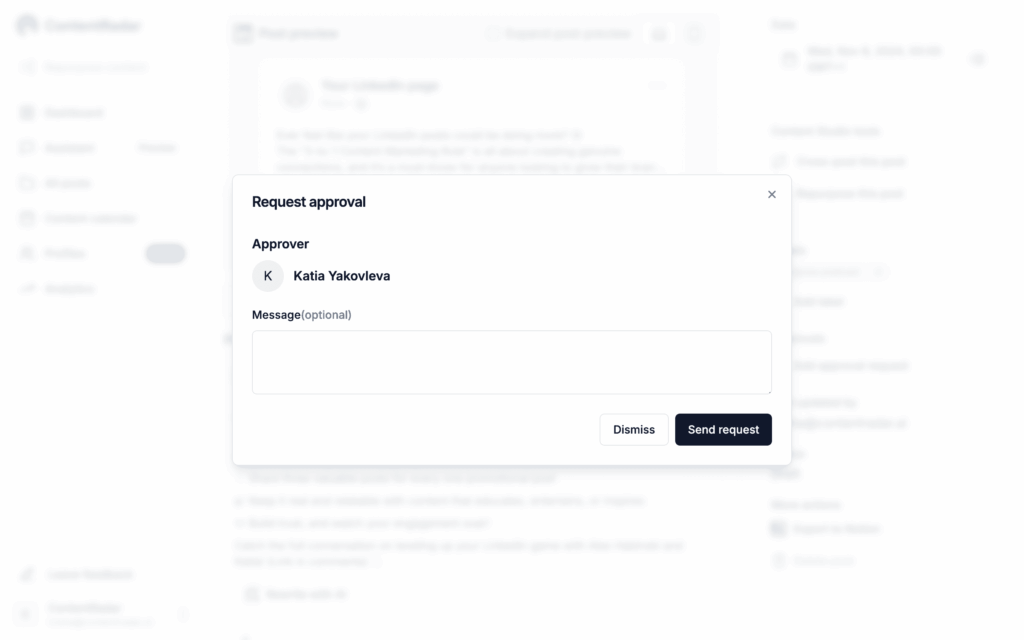 After creating your thread, you can send it to a teammate or client for review before it’s scheduled. They’ll catch any potential issues and approve the content, giving you total confidence that everything’s accurate and on-brand. This eliminates the risk of going back and forth over email or missing feedback due to miscommunication.