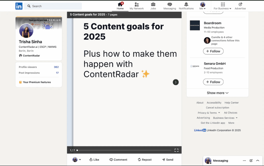 - Preview before publishing: Ensure your carousel looks perfect in the LinkedIn feed with ContentRadar’s post preview feature.