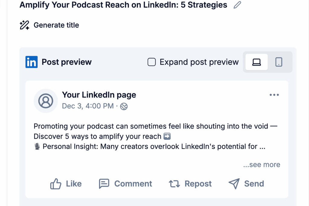 By previewing, you can ensure your post is engaging, professional, and optimized for visibility—saving yourself from last-minute edits or missed opportunities.