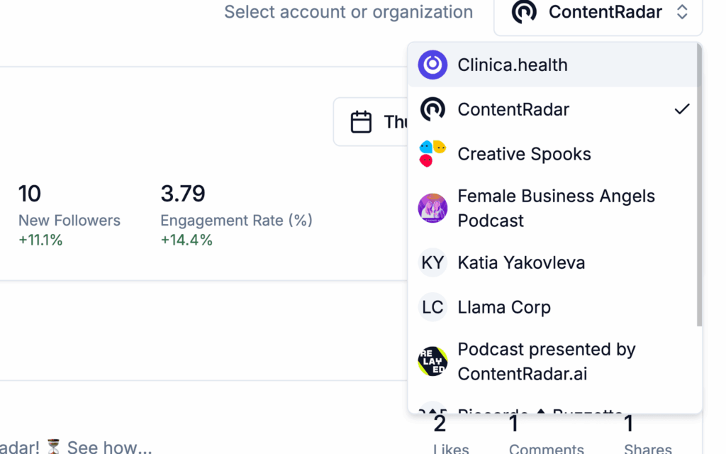 - Connect multiple LinkedIn accounts: Add your teammates’ or employees’ LinkedIn profiles to ContentRadar (with their permission, of course).