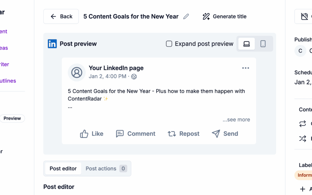 Since LinkedIn lacks a native preview feature, tools like ContentRadar step in to fill the gap. Here’s how: