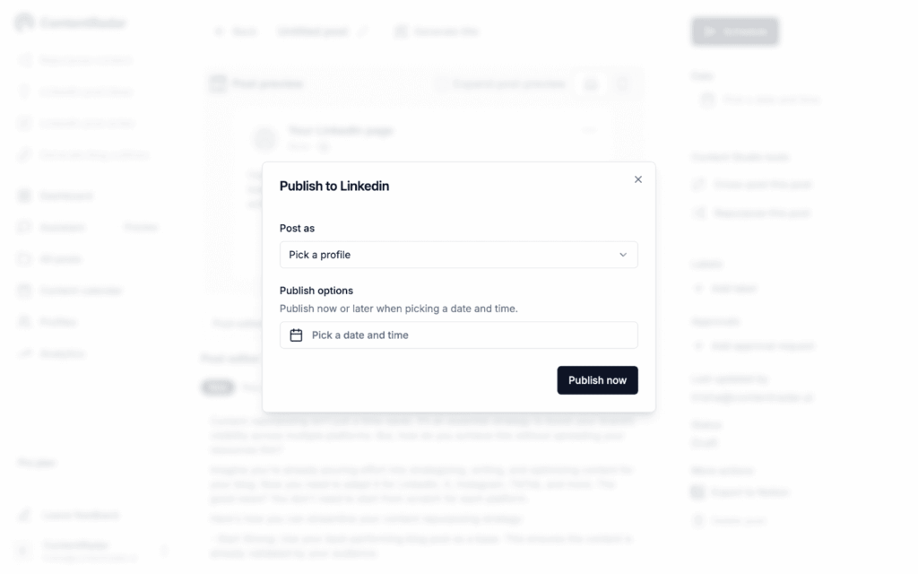 While Repurpose.io excels in video and audio distribution, ContentRadar is better suited for those looking to dominate LinkedIn and X with diverse content formats.