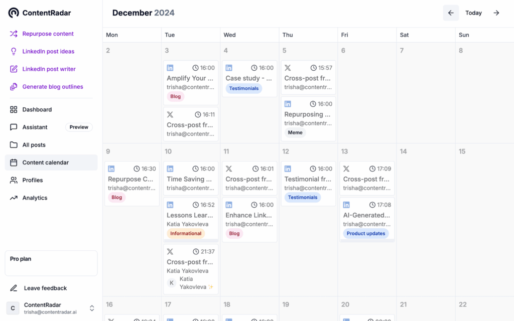 Consistency is key to building a strong personal brand. Use ContentRadar’s scheduling feature to plan your posts ahead of time, ensuring you stay active even during busy weeks.